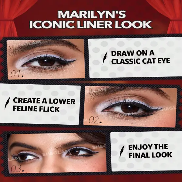 این خط چشم جلوهای مات-مشکی، کلاسیک و بسیار تمیز روی پلک ایجاد میکند و نگاه شما را عمیق، گیرا و زنانهتر نشان میدهد؛ دقیقاً همان استایلی که مرلین مونرو به آن شهرت داشت.